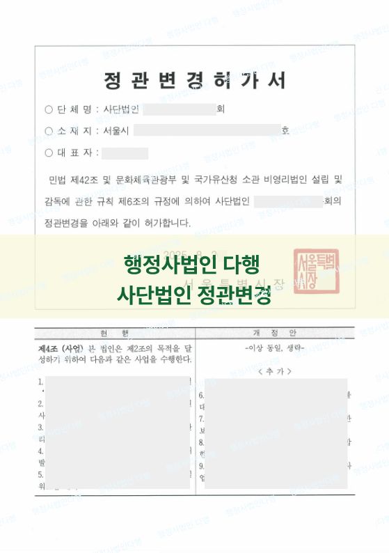 [25년8월] 문화체육관광부 및 국가유산청 비영리사단법인 정관변경 페이지 정보 작성자 관리자 작성일26-04-10 20:05 조회11회 관련링크 본문 [25년8월] 문화체육관광부 및 국가유산청 비영리사단법인 정관변경 사례입니다. 이전글 다음글 목록