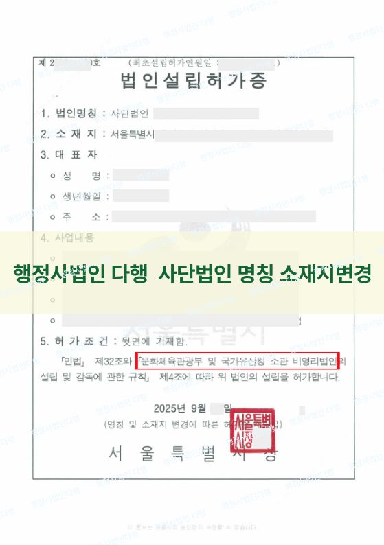 [25년9월] 문화체육관광부 및 국가유산청 비영리사단법인-소재지 및 명칭 변경 페이지 정보 작성자 관리자 작성일26-04-15 00:58 조회14회 관련링크 본문 문화체육관광부 및 국가유산청 비영리사단법인 소재지 및 명칭 변경 [행정사법인 다행] 이전글 다음글 목록